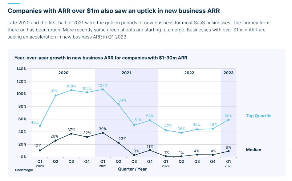ChartMogul released its latest, comprehensive SaaS Benchmarks Report (n = 3,000+). Above I highlighted the early (1H 2021) deceleration prior to peak SaaS, suggesting $1m-$30m ARR SaaS might be a useful canary in the coal mine for larger, public SaaS companies.