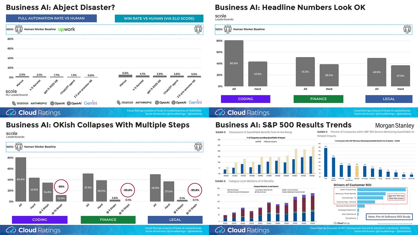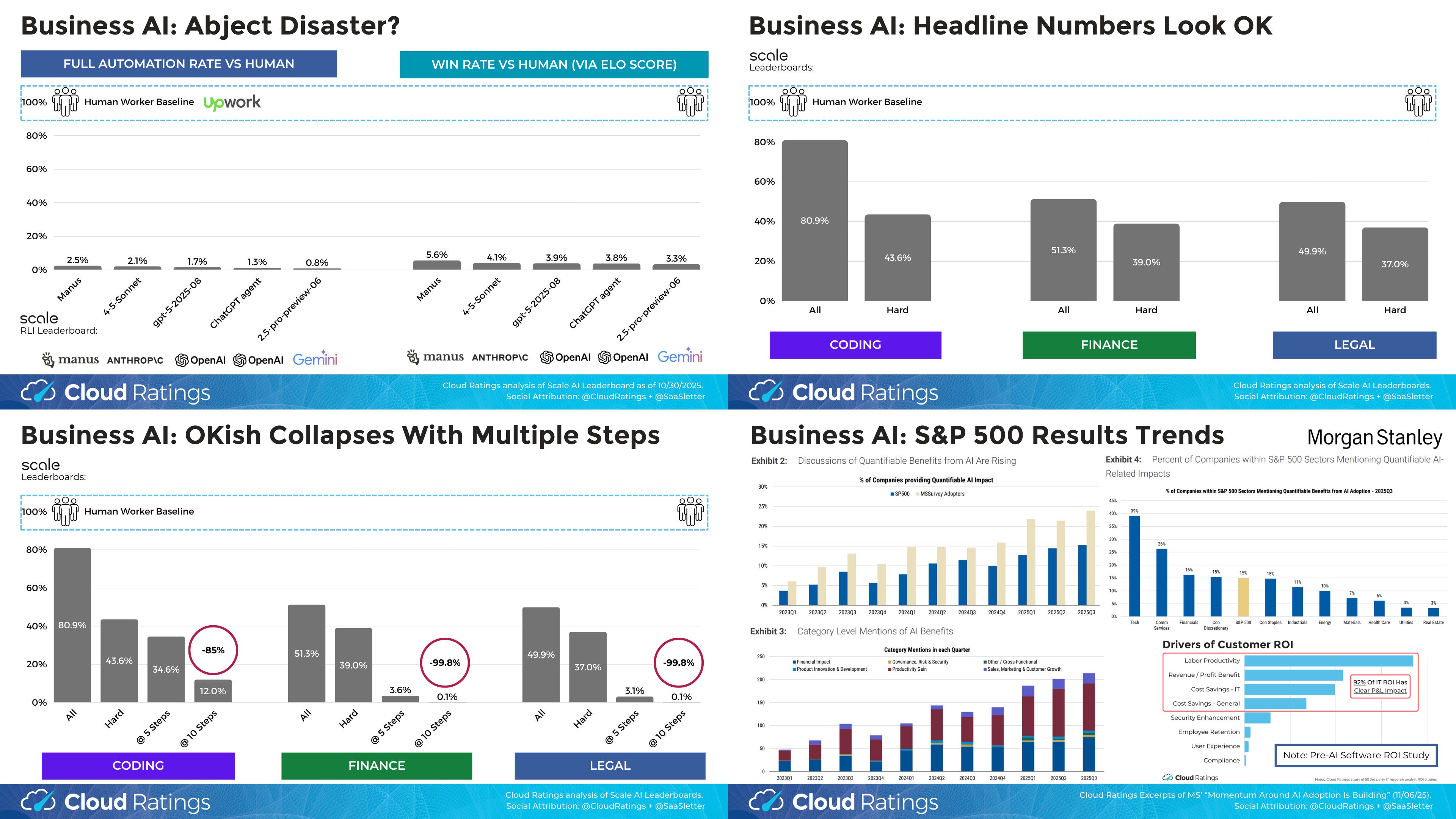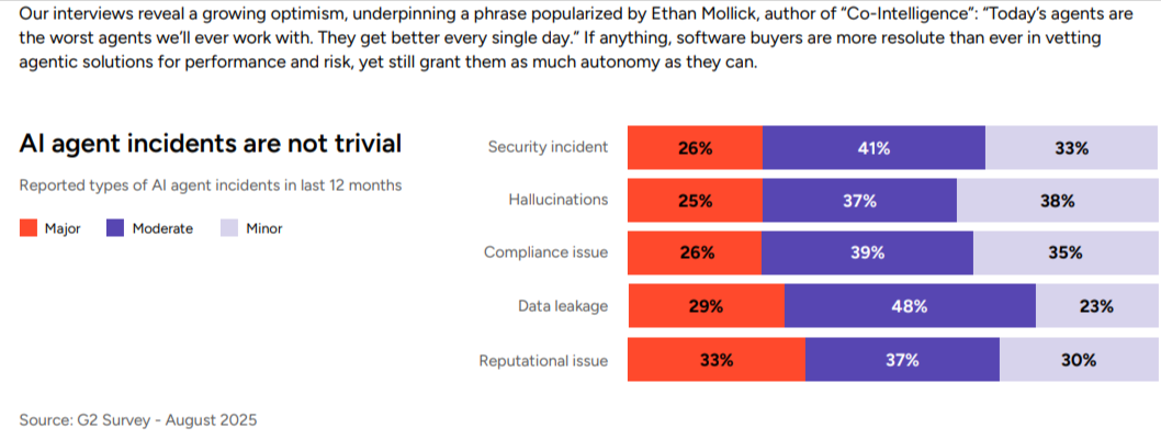 Surprising signs of a “risk on” mentality from buyers despite meaningful incident rates and higher-than-expected human oversight. Those incident rates align with the poor AI success rates we covered in “Is AI An Abject Disaster?”