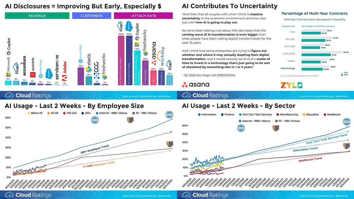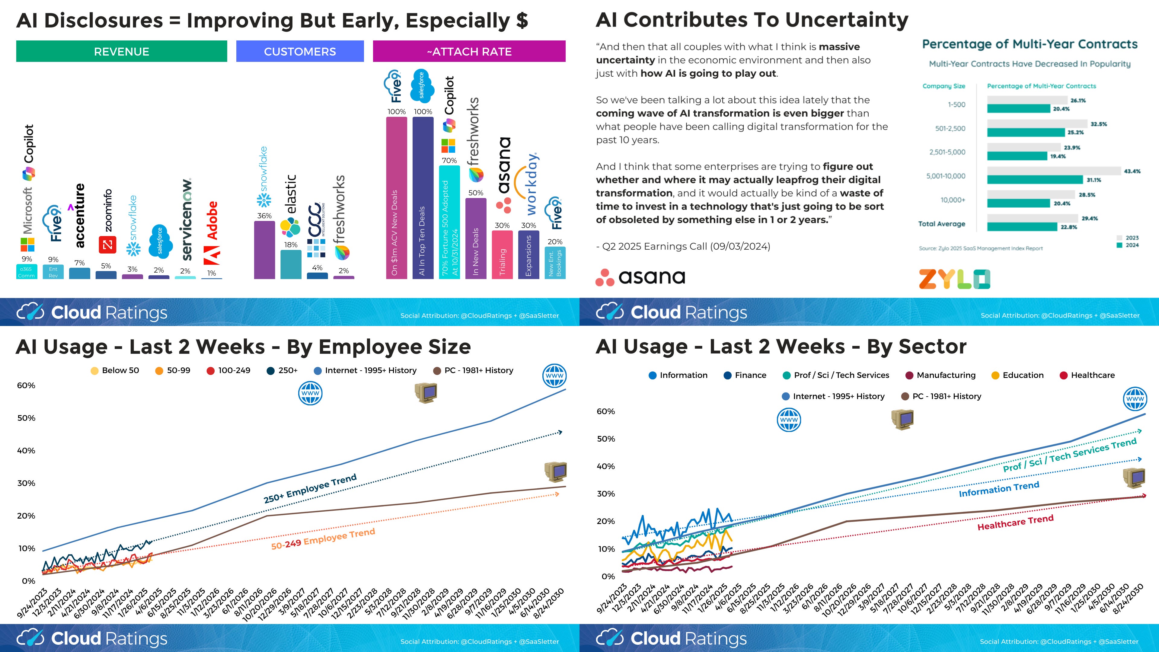 Zylo: Yet another favorite that was worthy of its own podcast episode: Ben Pippenger + team’s “2025 SaaS Management Index” covers $40+ billion of software spend across 40 million licenses, with uniquely strong visibility into the “Enterprise Plus” segment (average SaaS spend of $284 million per org!). Our report coverage focused on shorter contract durations as a symptom of AI-driven uncertainty.