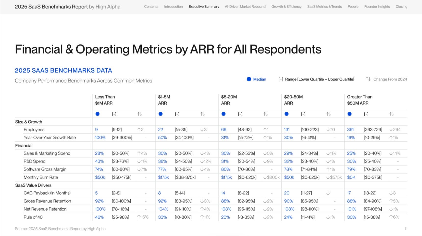 High Alpha: “2025 SaaS Benchmarks” (n=800+) with our takes here. h/t Kristian Andersen, Scott Dorsey, Mollie Kuramoto + co.