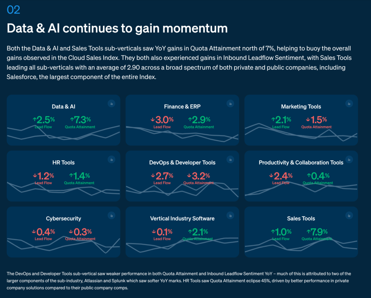Their data was more favorable than the Fullcast benchmarks, with quota and leadflow stable to slightly improving:
