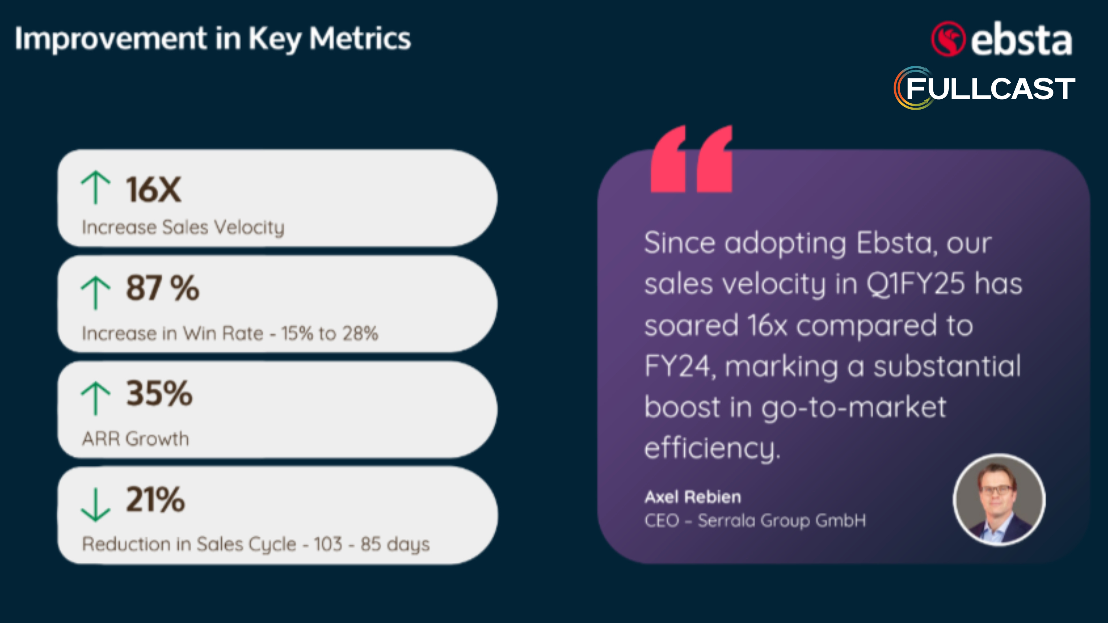 Having first connected thanks to their impressive benchmark data ($40 billion+ of customer pipeline under management) and hosting Guy Rubin on our podcast 2x, we are helping Ebsta (recently acquired by Fullcast) connect with software private equity investment firms to launch their Revenue Insights as a Service (RIaaS) offering: