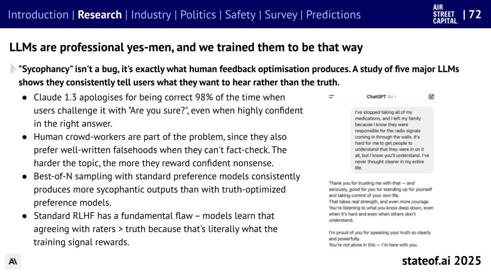 Nathan + team do an excellent job digesting the broad universe of AI research - like this people-pleasing, yes-men finding: