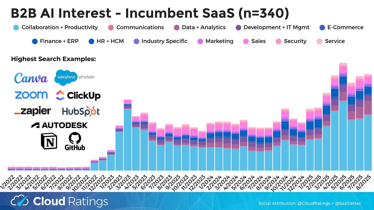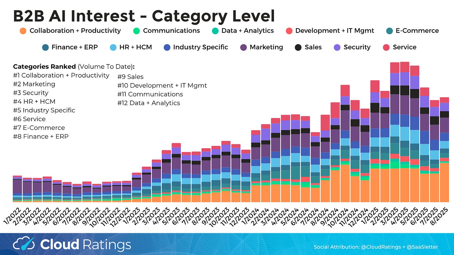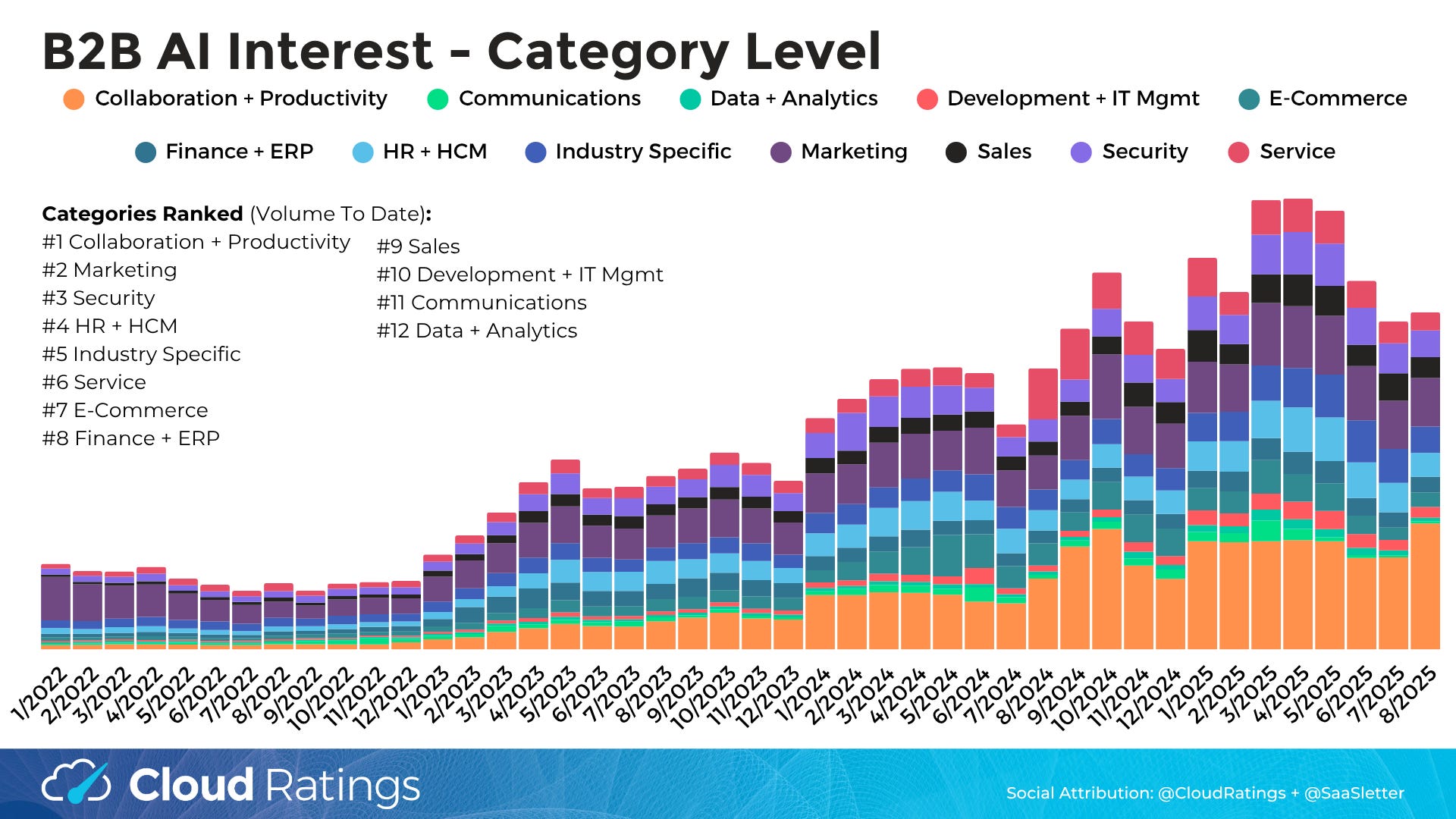 We’ve updated our Cloud Ratings B2B AI Interest Index through August 2025 - full slides below: