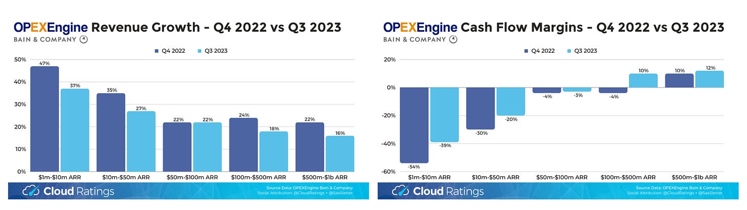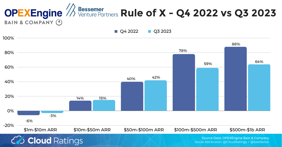 Testing The Rule of X From Bessemer: Bain’s OPEXEngine group released benchmark data through Q3 2023… which I used to visualize BVP’s Rule of X vs Rule of 40 - article here