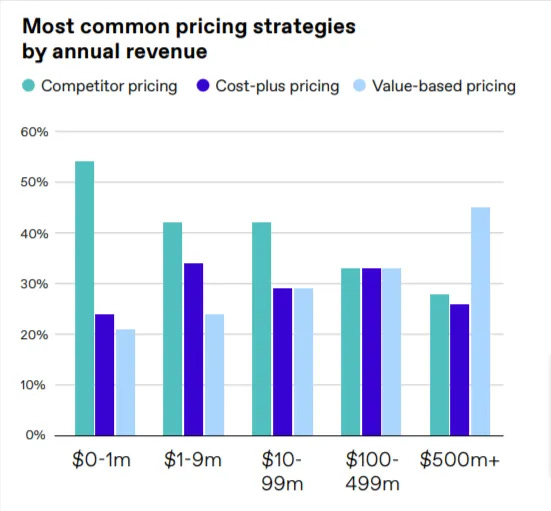 - Competitor-Based Pricing (used by 38% of vendors): TBD, but somewhat likely to be given/competed away. Why? Competitor-based pricing is often prevalent in crowded + newer categories with many smaller vendors → this increases the odds for a “race to the bottom”