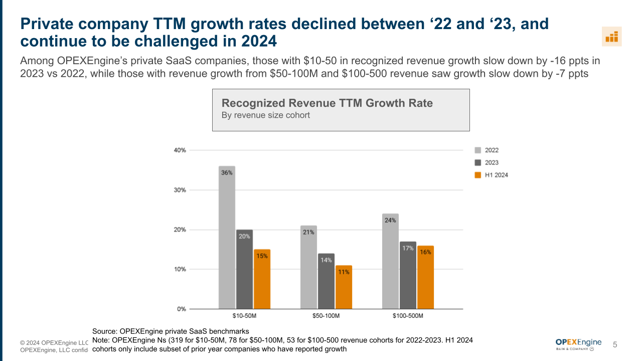 This slide from Lauren Kelley of OPEXEngine by Bain & Company reminded me of our “Messy Middle” theme - $10m-$50m ARR has been particularly challenged: