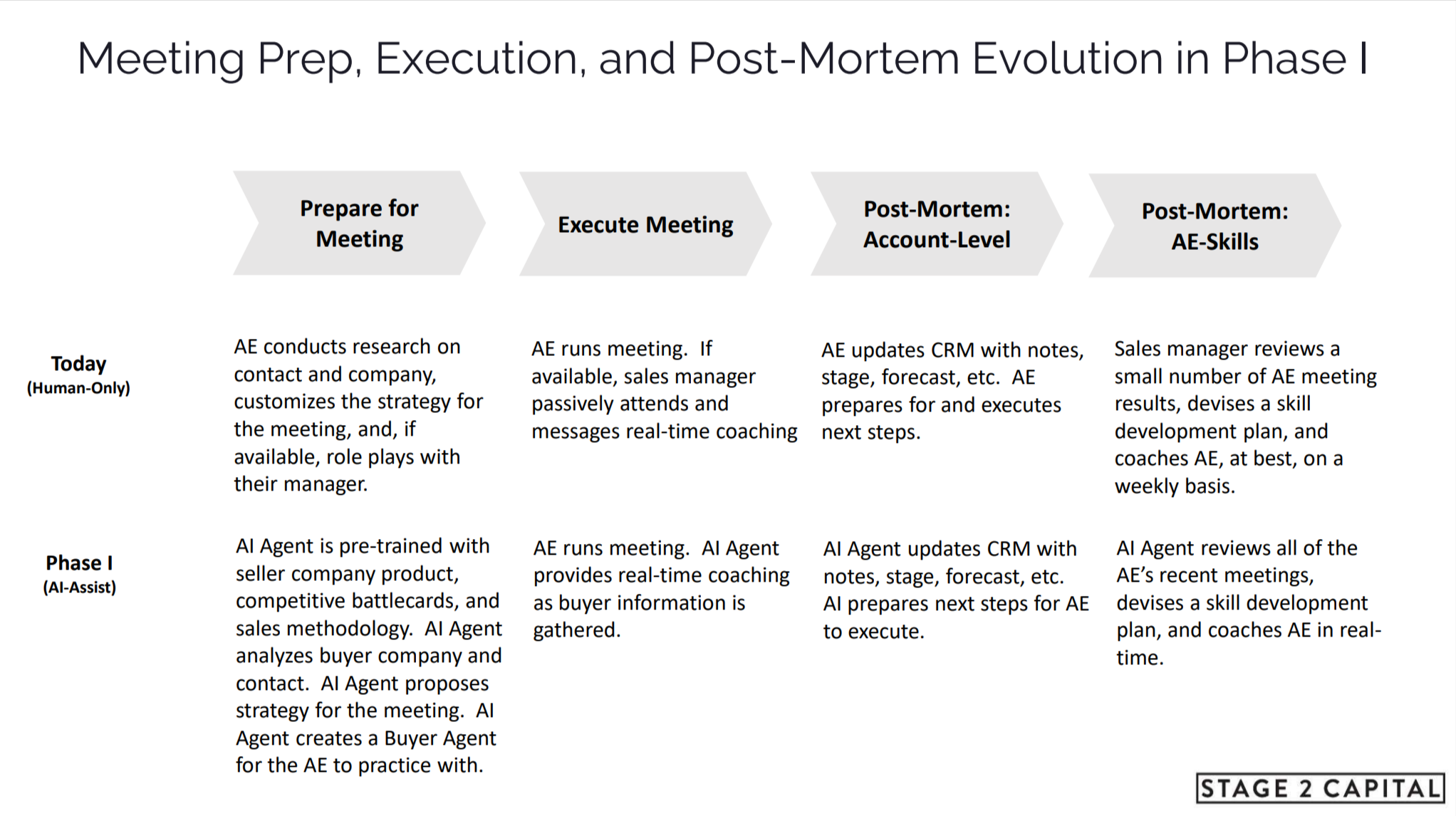 As somewhat of a sales AI skeptic, I found Mark Roberge’s (Co-Founder Stage 2 Capital, Founding CRO Hubspot, Professor at Harvard Business School) talk to be encouraging. His framework slides here… with supporting implementation case studies (from AI portco’s MomentumIO, Letter AI, and Rally UXR) in the event replay.