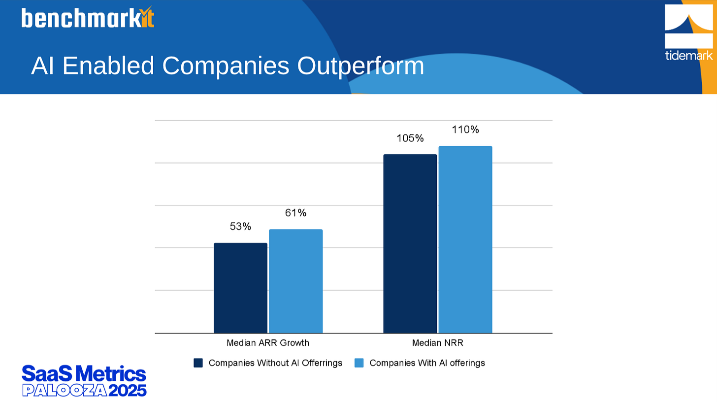 Unsurprisingly, AI Enabled vendors are growing faster (+8%) with higher NRR (+5%).