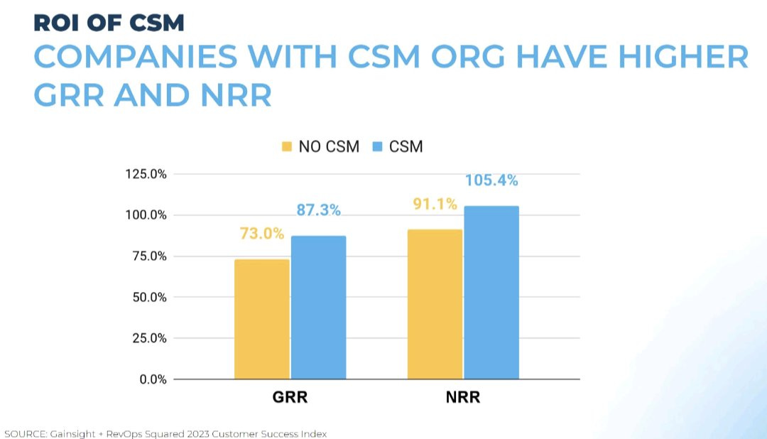The 73% gross retention rate for vendors WITHOUT customer success functions captured my attention - from a Gainsight / Benchmarkit study: