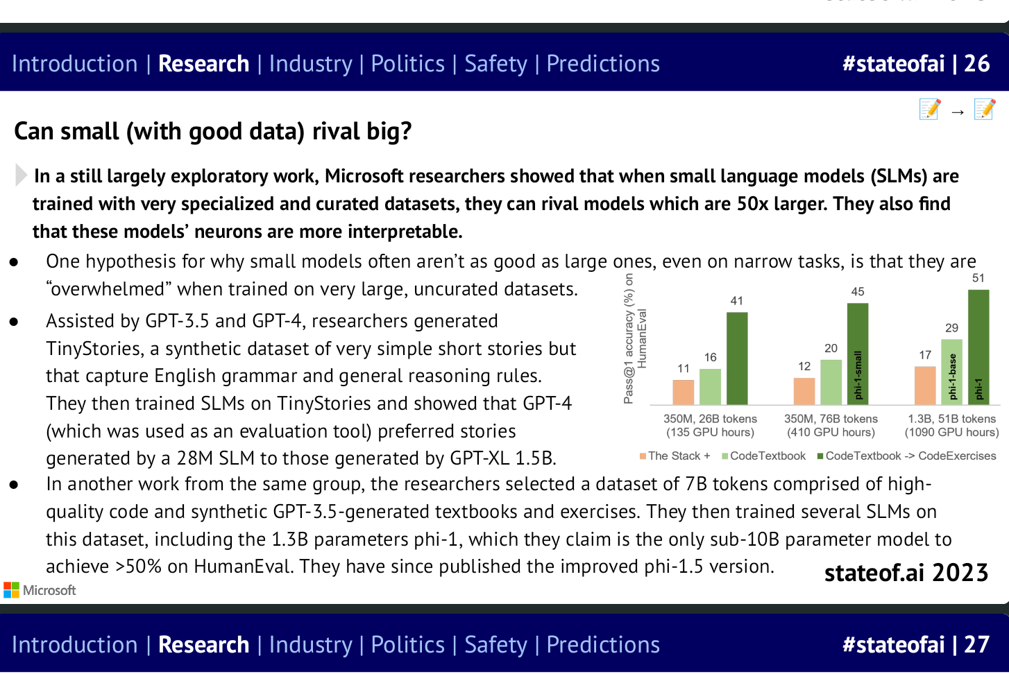 Air Street’s “State of AI 2023” included a summary of exploratory research by Microsoft on small language models: